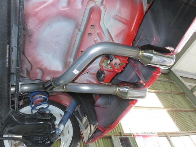 持ち込みされた社外マフラー(HKS:3ピース)を交換します。