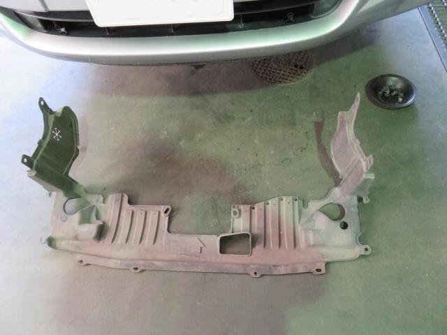 コンプレッサーを交換ため、エンジン・フロントアンダーカバーを取り外します。