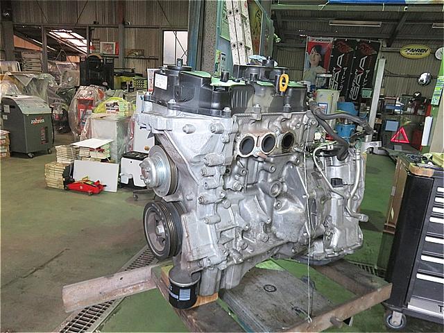 【診断/原因】エンジン内部より金属異音があり、インテークよりオイルの吹き返しが発生していることが確認されました。エンジン内部の部品(ピストン、バルブなど)に深刻な損傷があり、エンジン内部の修理(オーバーホール)も可能ですが、費用と時間を考慮し、リビルトエンジン(再生品)への交換をご提案させていただき、交換する事となりました。